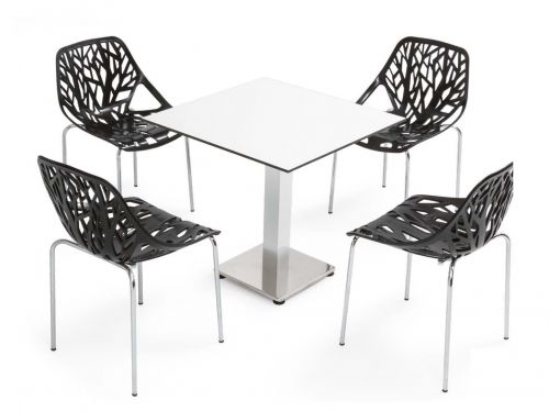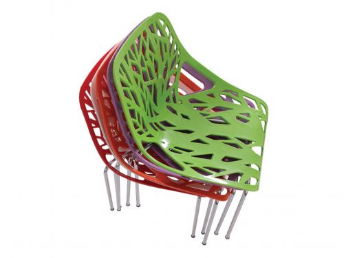 Stacking stylish Limo chair with UV resistant resin shell and powder coated or chromate steel legs. Self assembly with screws. Shiny surface. Easy to clean. Suitable for commercial and domestic usage.
